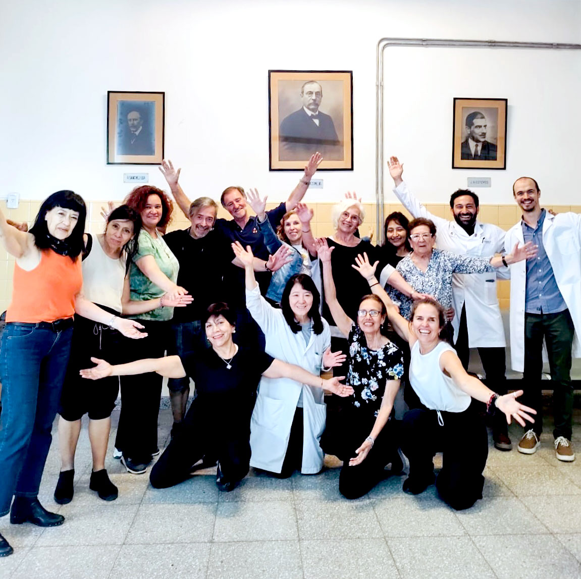 Trabajo Hospitalario A partir del trabajo realizado en instituciones hospitalarias, trasladamos esta experiencia al ámbito de la milonga, generando un espacio accesible para personas con Parkinson que quedaban excluidas del cupo hospitalario. Asimismo, brindamos formación a docentes de tango de diferentes partes del mundo, interesados en integrar una perspectiva terapéutica en sus prácticas de enseñanza de esta danza.